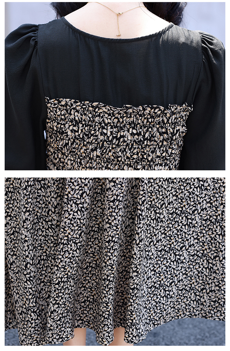 スクエアカラー花柄フェイクツーピース長袖ドレスレディース秋ファッションスリムスリムロングドレス