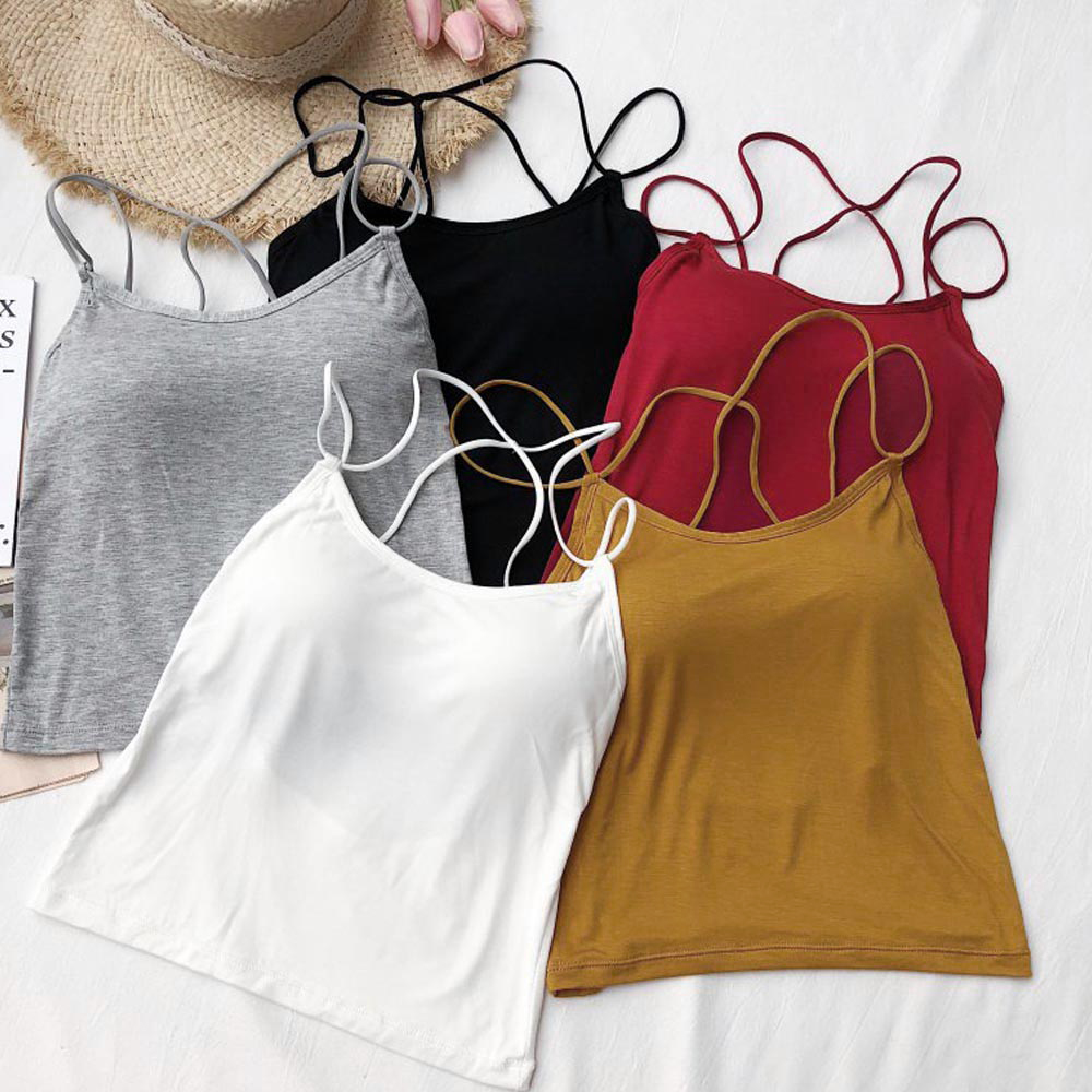 シンプルながらもおしゃれなバッククロスストラップの背中見せキャミソール