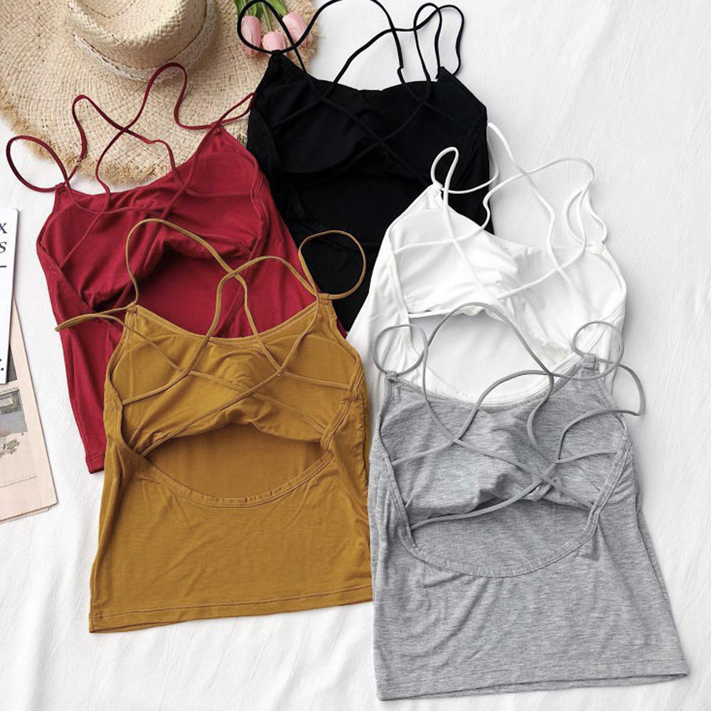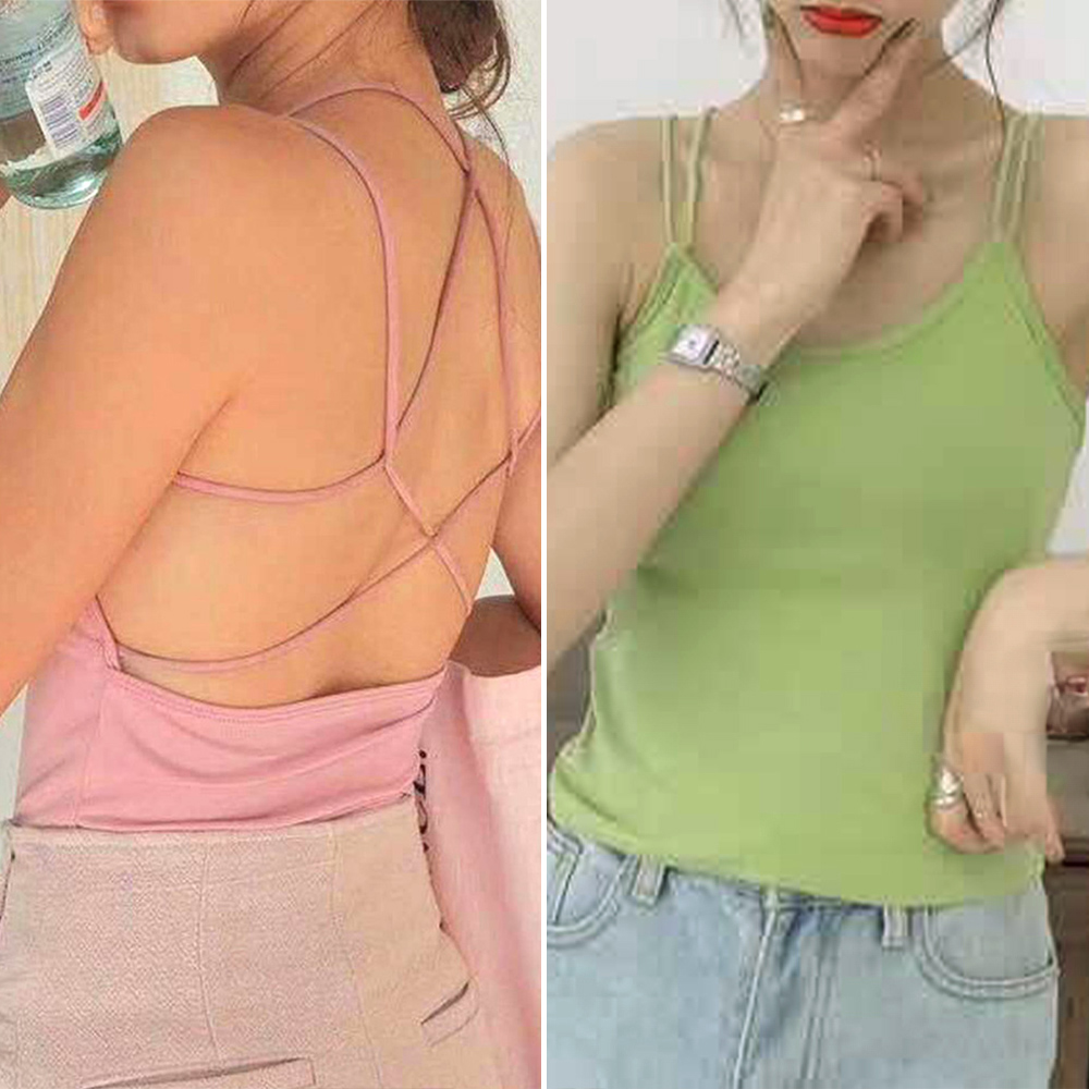 背中あき キャミソール パッド付き バックオープン バッククロス キャミソール