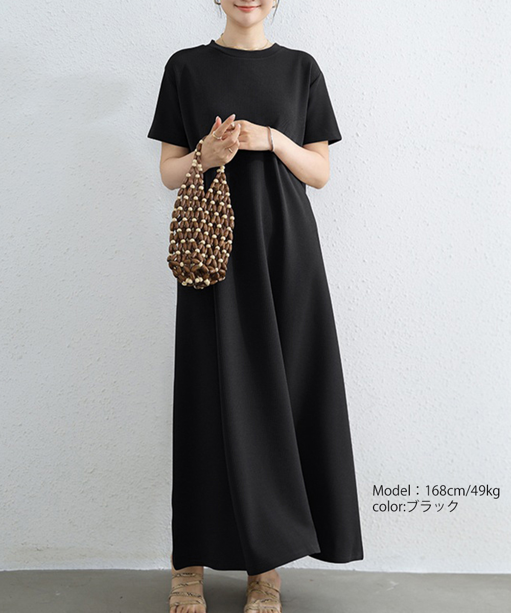 半袖 ロングワンピース レディース ラウンドネック リラックスワンピ 30代40代50代 着やせワンピ 無地ルームウェア