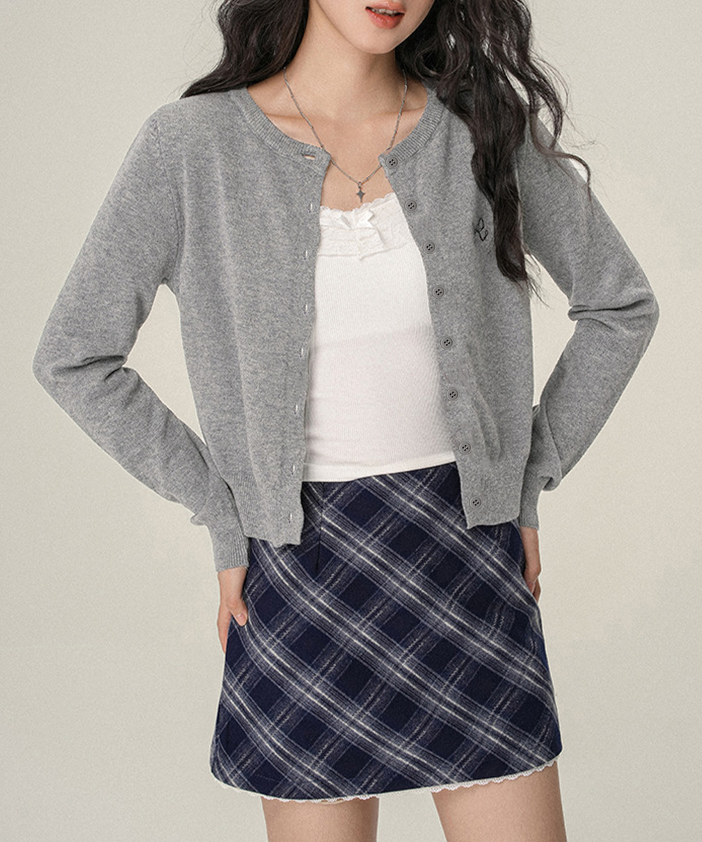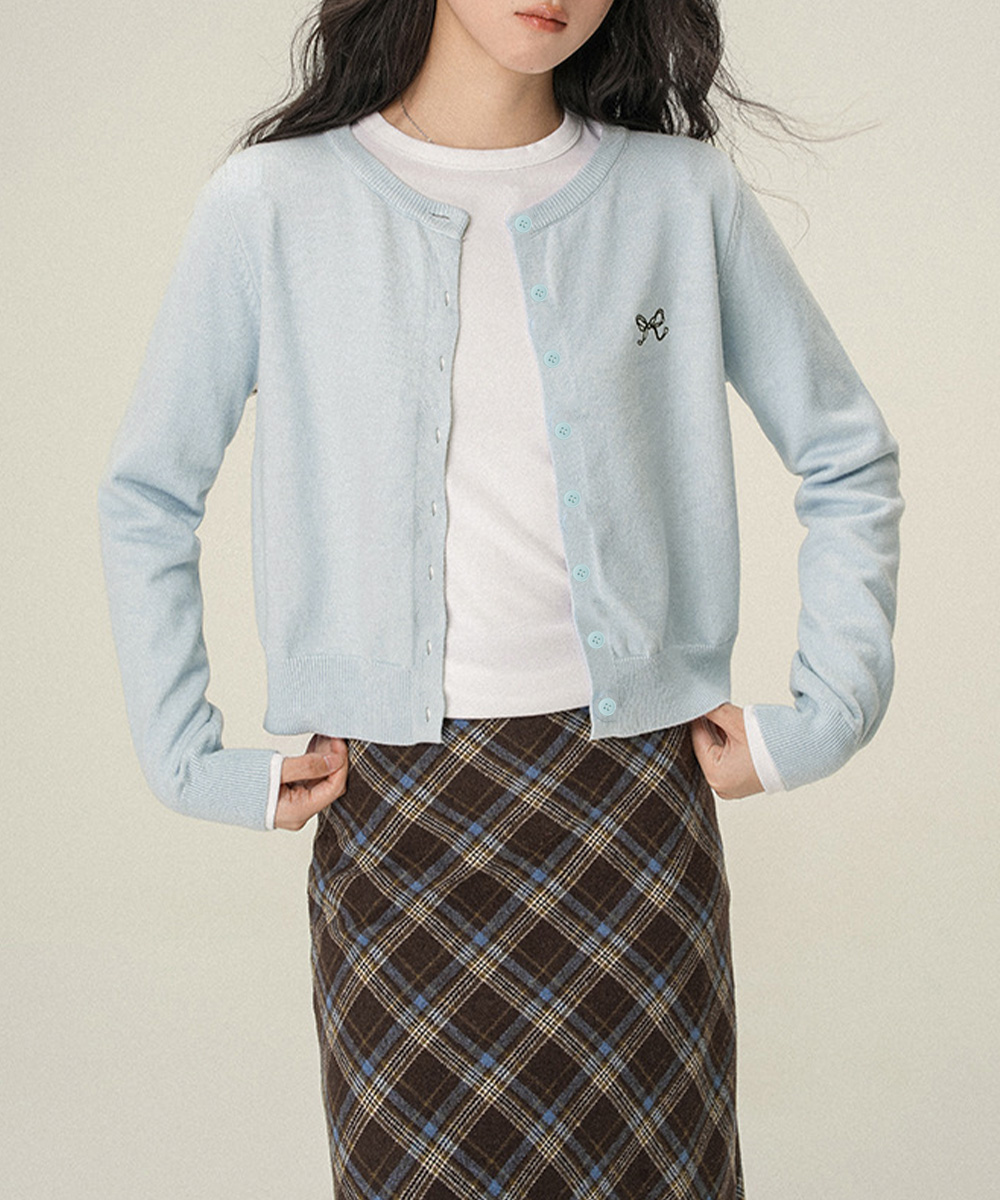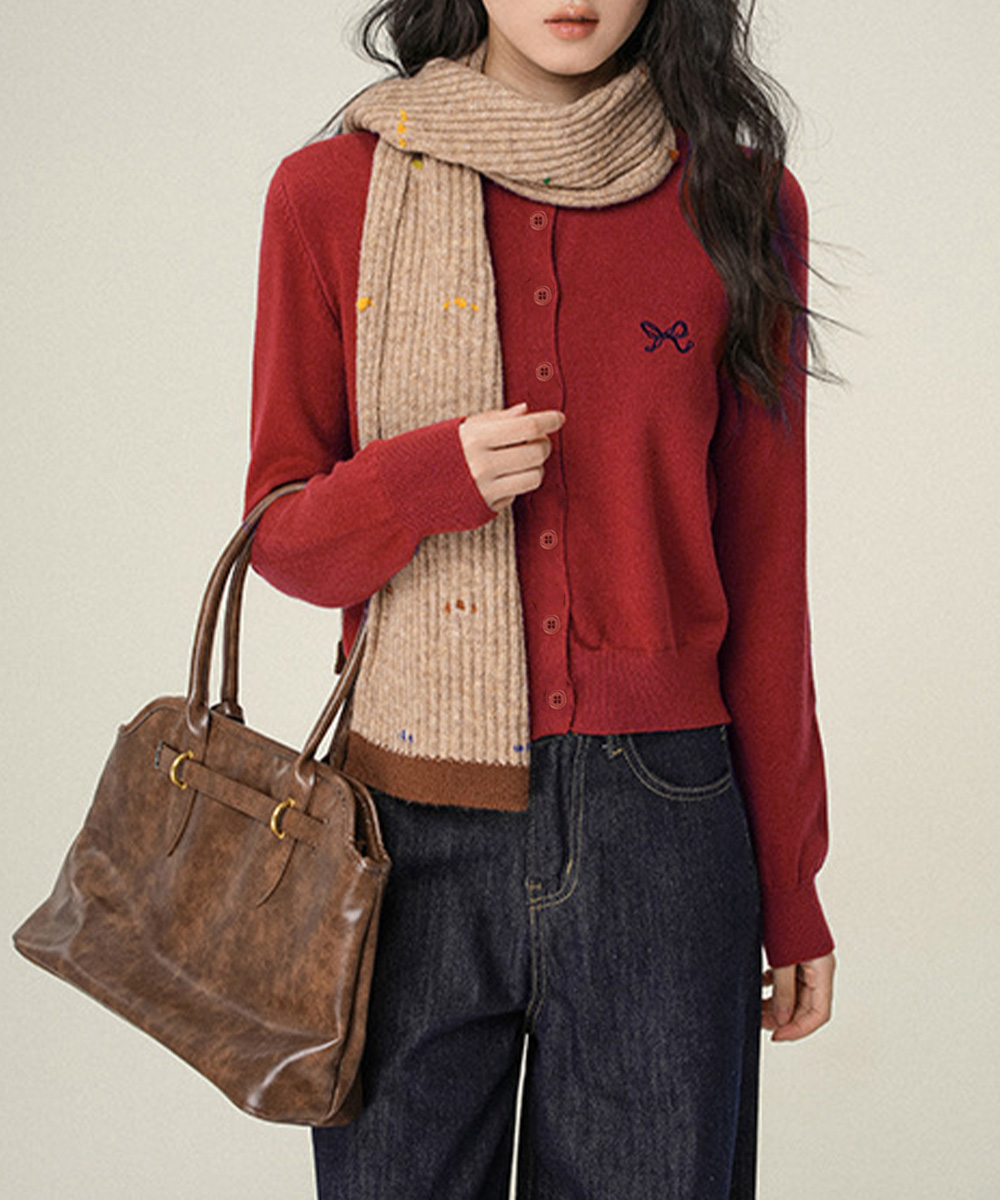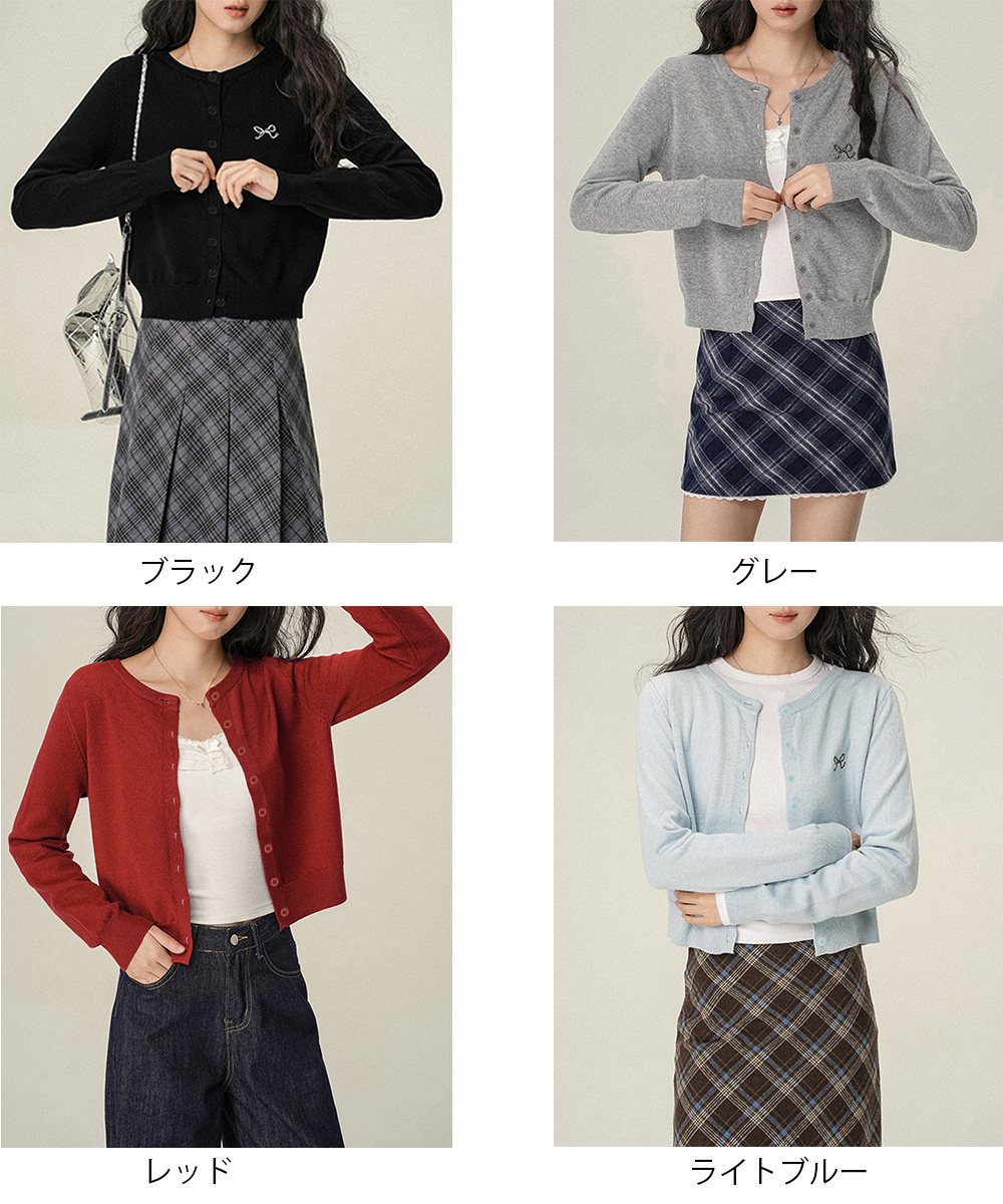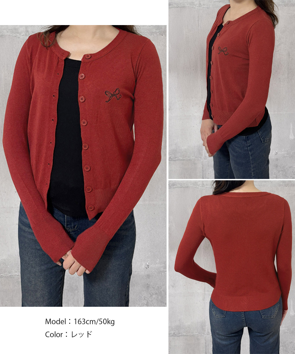可愛らしい胸元のリボンがアクセントになったニットカーディガン。