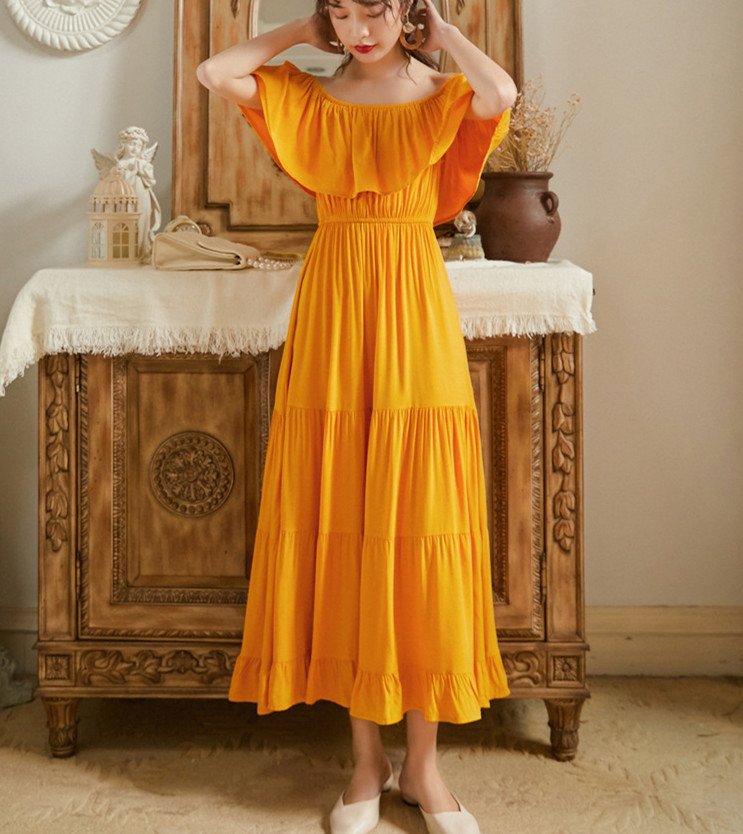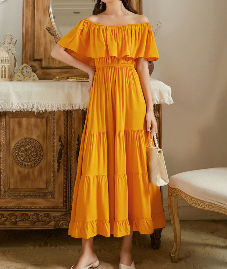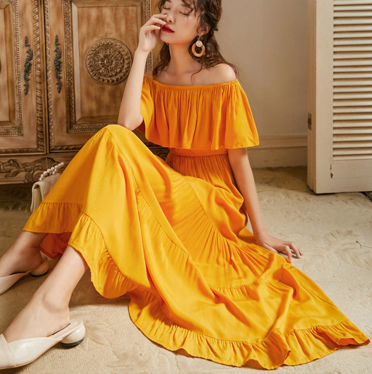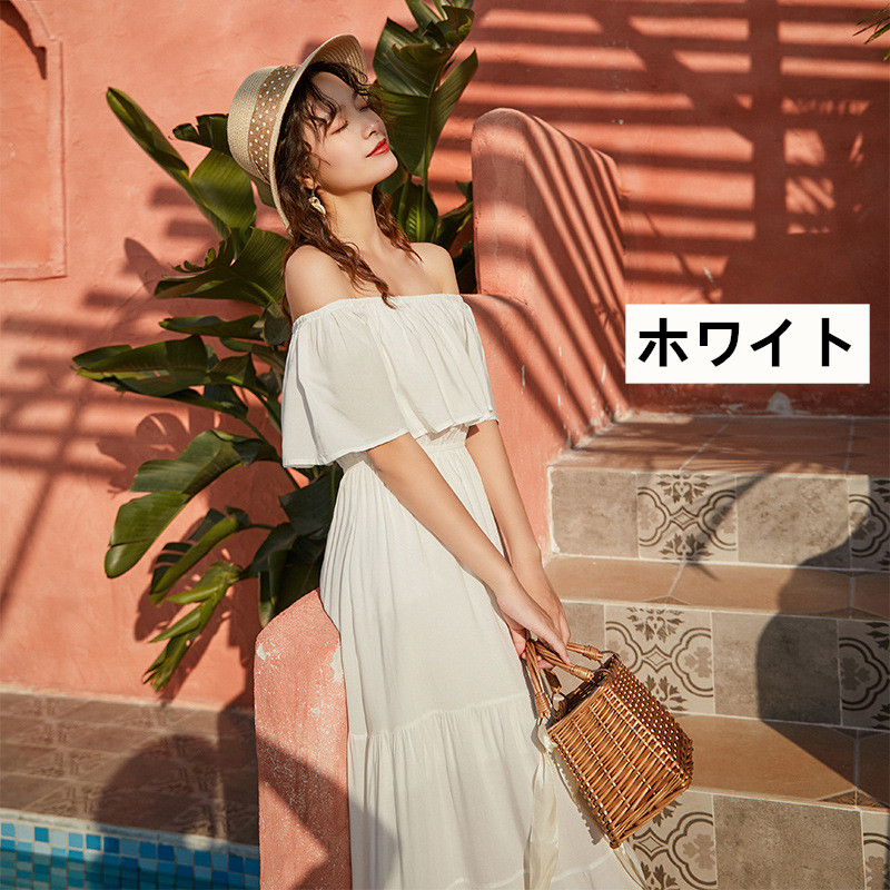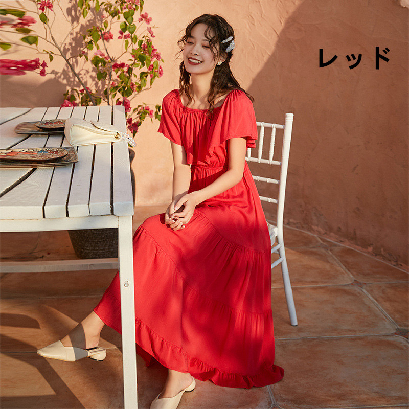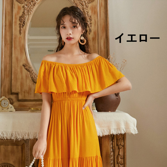 リゾートワンピース 大人可愛い 夏ワンピース オフショルダー ワンピース 白 赤 黄 ハワイアン 沖縄 無地