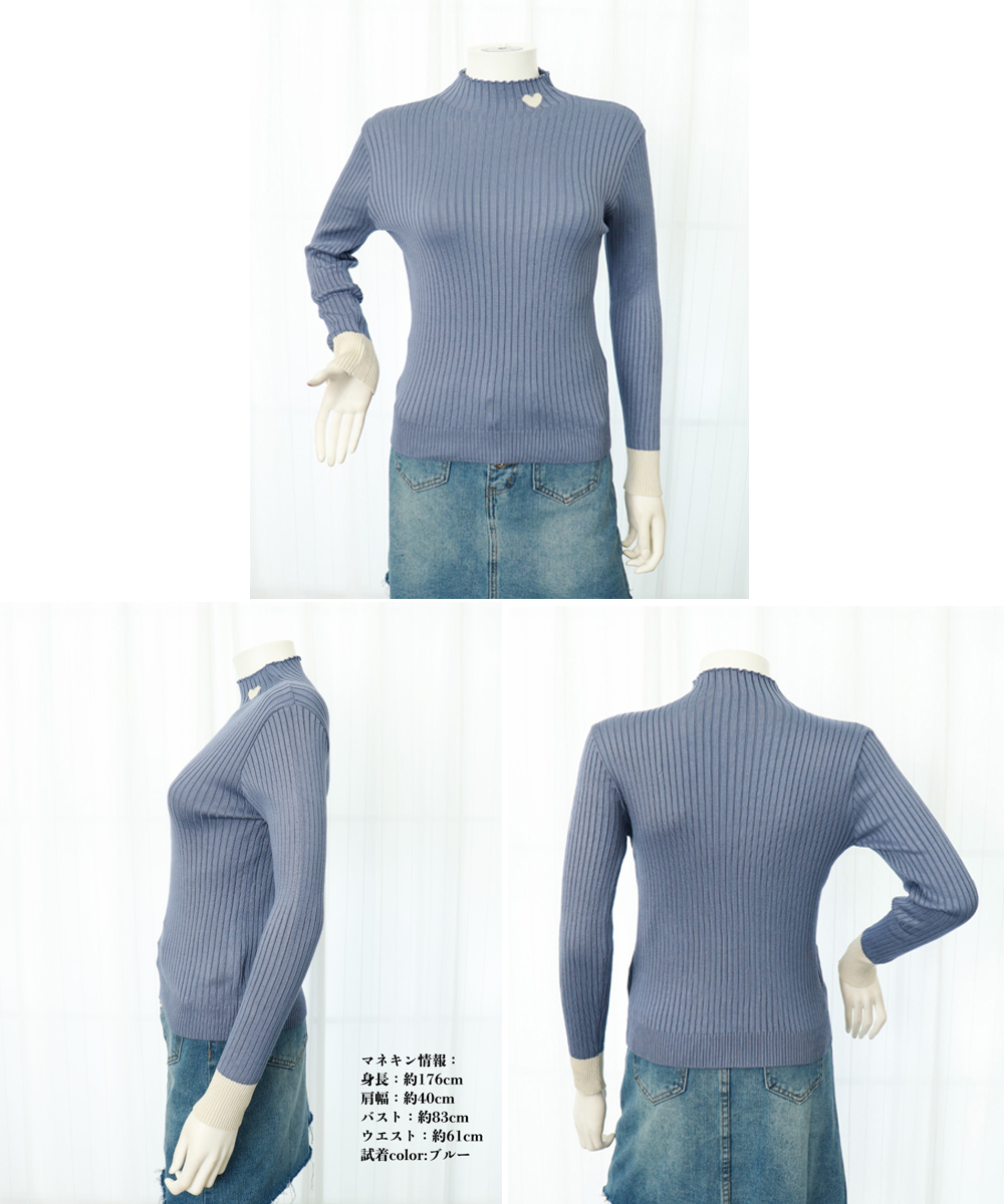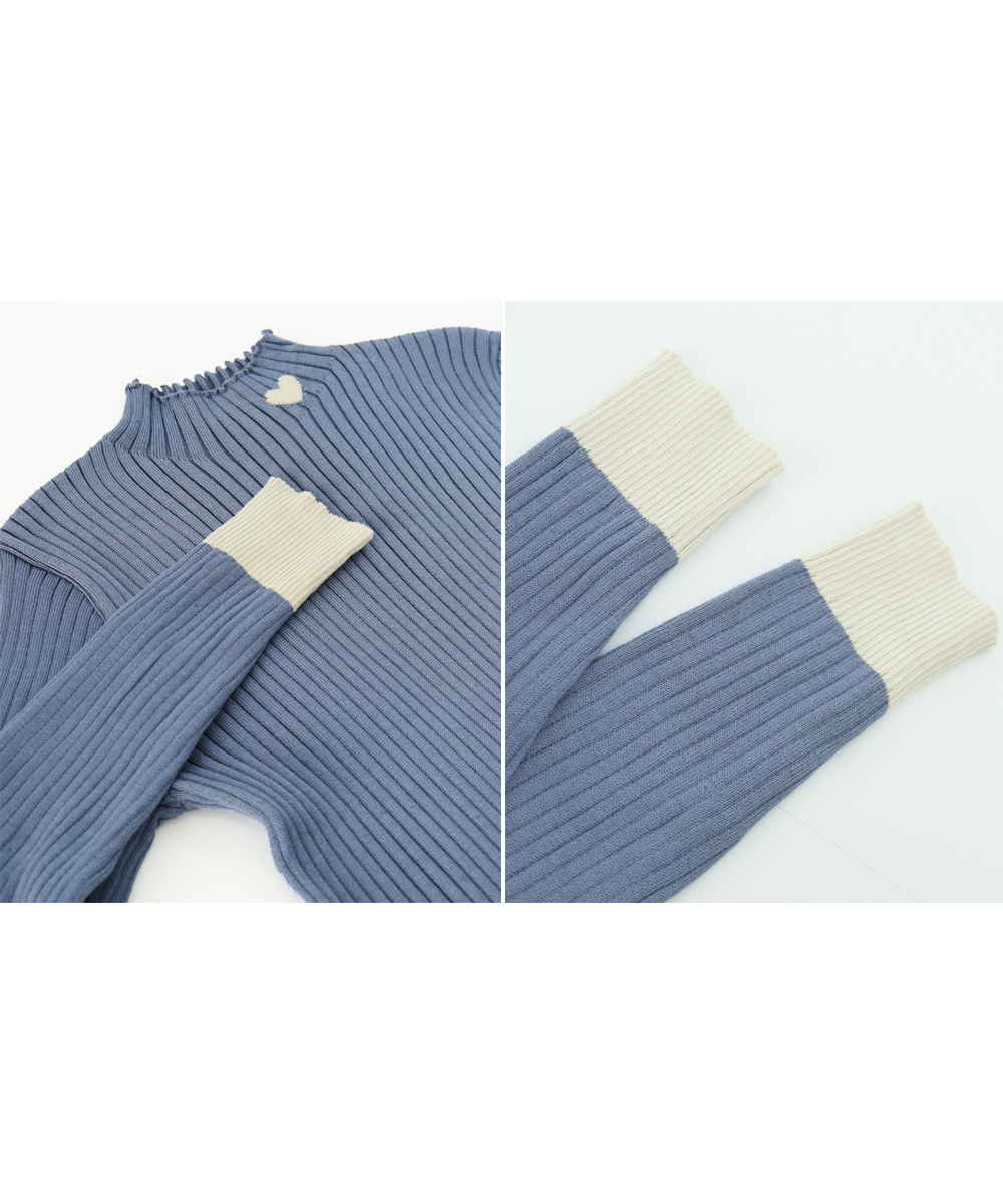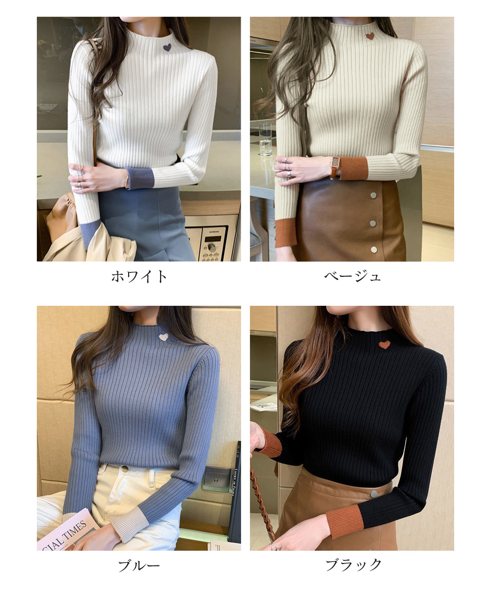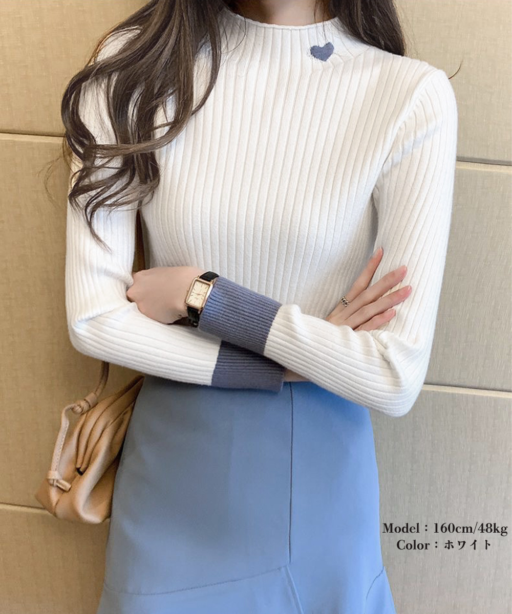 首元にハートが入ったリブニットです。