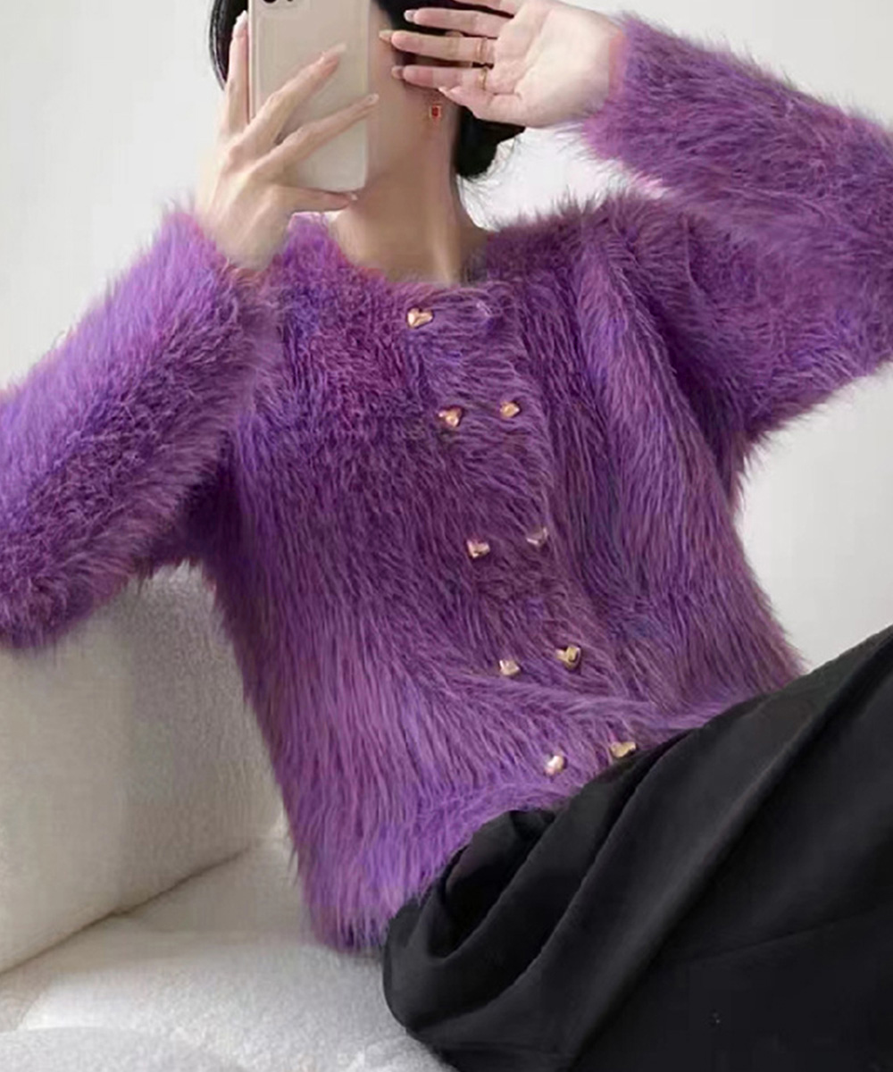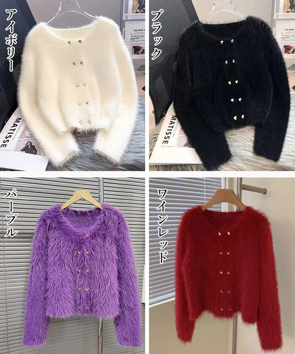 ファートップス新作 モヘアカーディガン ふわふわ服あったか