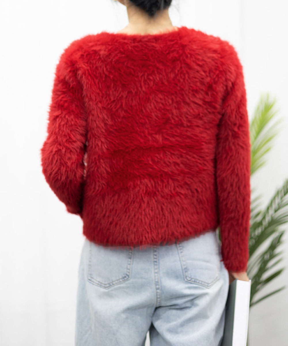 ふんわりと長い毛足、ボリューム感たっぷりに仕上げた韓国っぽショート丈レディースボアカーディガン